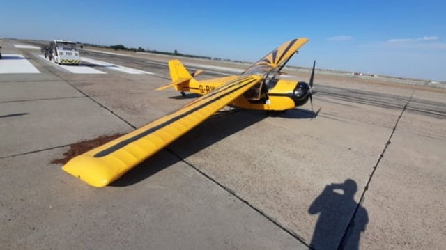 Aterizare forțată pe Aeroportul "Mihail Kogălniceanu". Un avion de mici dimensiuni a rămas fără roată din cauza vântului