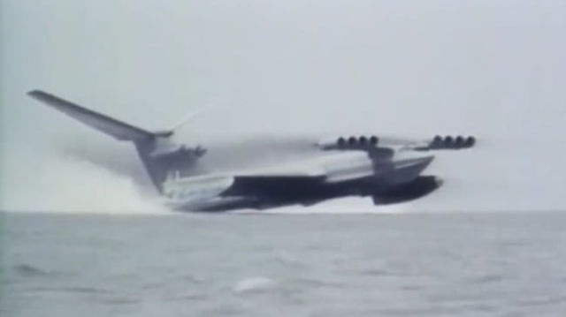 Imagini rare cu "monstrul din Marea Caspică". Cel mai mare avion din lume până 1988 rula pe apă cu viteză uriașă VIDEO