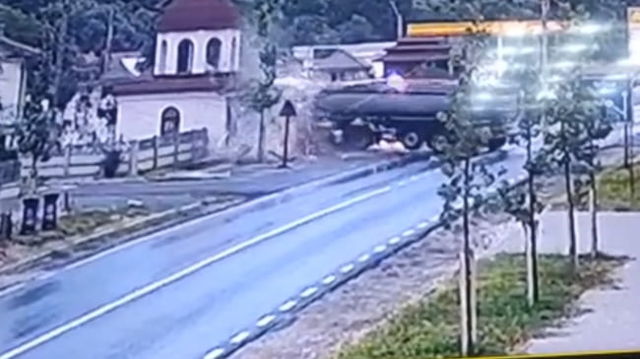 Un TIR a dărâmat capela unei biserici din Titu. Zidul și un stâlp de electricitate au fost distruși VIDEO