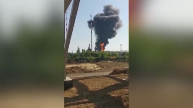 Momentul în care o dronă ucraineană kamikaze lovește cea mai mare rafinărie din Rusia VIDEO
