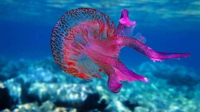 Plajele din Grecia, invadate de meduze mov: "Secretă o neurotoxină cu pH foarte scăzut". Antidotul pentru inflamația severă