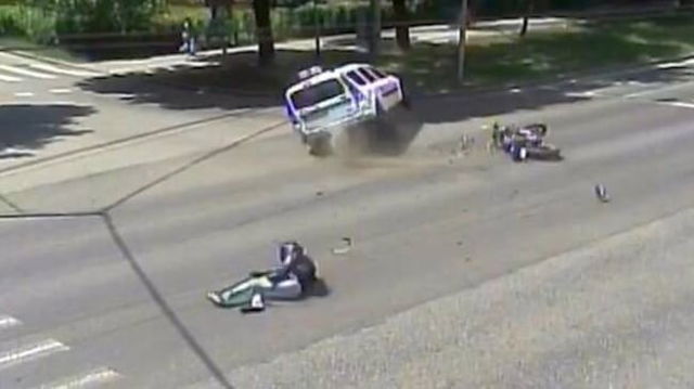 Momentul în care un taxi este răsturnat de o motocicletă. Persoanele implicate au scăpat în mod miraculos nevătămate VIDEO