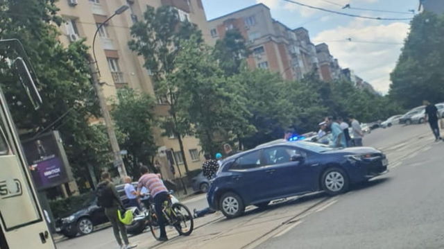 Poliţist pe motocicletă, lovit într-o intersecție din București. Agentul a fost transportat de urgență la spital