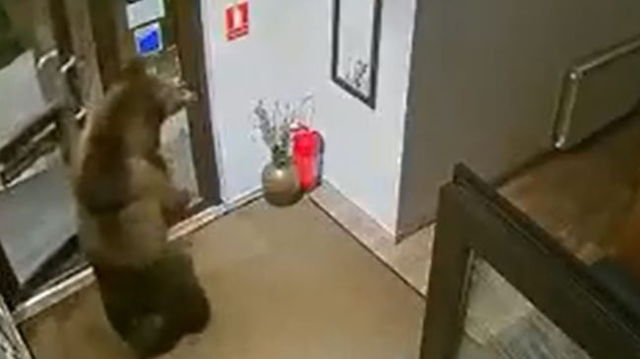 Urs filmat când a intrat într-o pensiune din Predeal, după ce a deschis singur ușa de două ori VIDEO