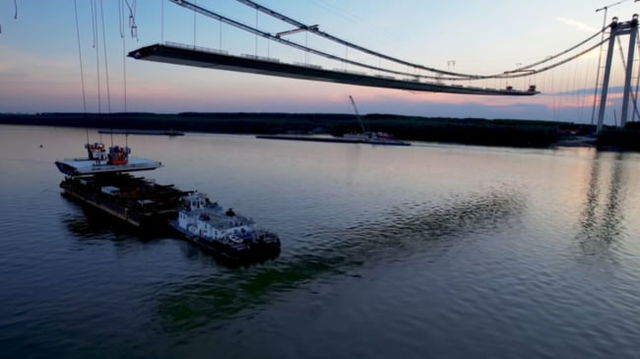 Imagini VIDEO fabuloase cu podul suspendat de la Brăila. Se lucrează non-stop