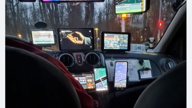 Taximetrist clujean cu 10 ecrane pe bord. Clientă: "Jur că în toată viața mea nu am văzut așa ceva"