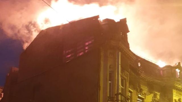 Incendiu puternic la acoperișul unei clădiri de pe Calea Moşilor din Capitală. Pompierii au intervenit cu 10 autospeciale FOTO
