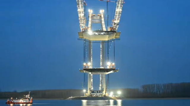 Filmarea spectaculoasă care îți arată cum s-a montat o bucată din podul suspendat de la Brăila VIDEO