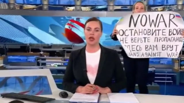 Protest anti-război la o importantă televiziune din Rusia. O jurnalistă a apărut în direct cu un mesaj dur: ”Vă mint chiar aici” VIDEO
