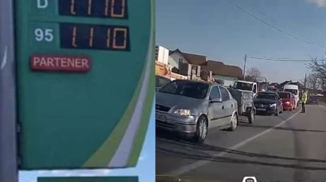 Benzină vândută cu 11,10 lei litrul într-un oraș din Bihor. Coadă pentru carburant ca pe vremea lui Ceaușescu VIDEO