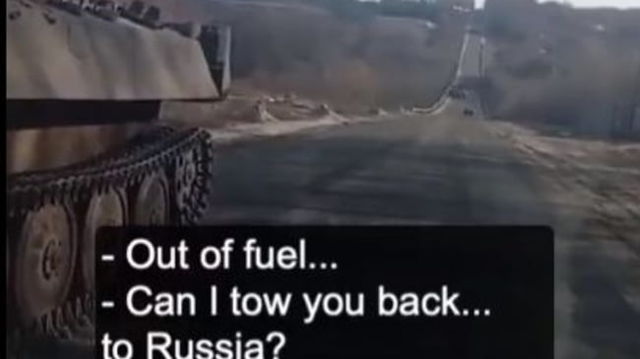 Tanc rusesc rămas în ”pana prostului”. Șofer ucrainean către militarul rus: ”Vă pot tracta eu înapoi în Rusia” VIDEO