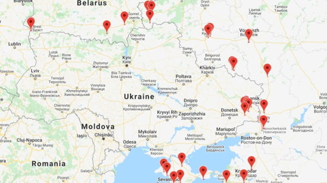 Harta care urmărește mișcările rușilor la granița cu Ucraina. Informațiile transmise de sateliți, folosite de specialiștii IT de la Kiev