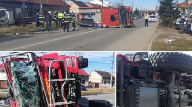 Trei pompieri a fost răniți după ce autospeciala cu care mergeau în misiune s-a răsturnat