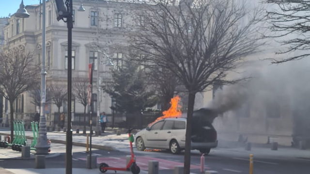 Mașină în flăcări în centrul Capitalei. Poliția Rutieră a deviat traficul VIDEO