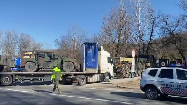 Noi imagini ale convoiului cu tehnică militară din SUA ajuns în România. În ce localitate s-a oprit VIDEO