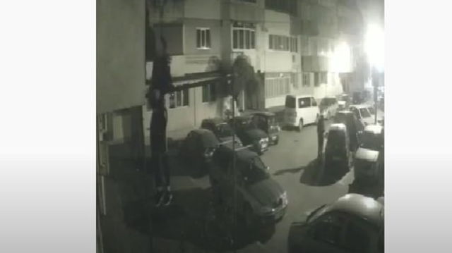 Momentul în care un hoț de haine se cățără până la etajul unu al unui bloc pentru o geacă pusă la uscat. Poliția așteaptă informații despre caz VIDEO