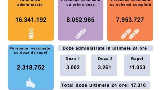 Raport vaccinare 25 ianuarie 2022. Peste 17.000 de persoane au fost imunizate în ultimele 24 de ore. Doar 3000 cu prima doză