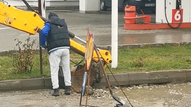 Imagini incredibile cu muncitori români care adună apa de pe un drum cu lopata VIDEO