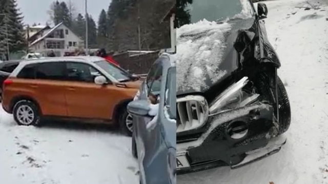 Haos în Predeal la prima ninsoare. Mașini cu pneuri de vară s-au transformat în sănii și au cauzat ciocniri în lanț VIDEO