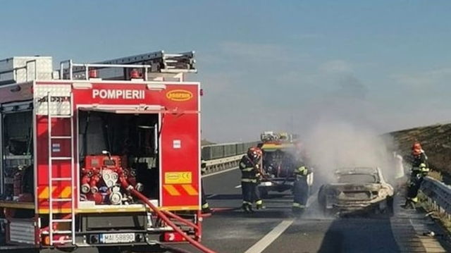 BMW cuprins de flăcări pe pe autostrada Timişoara – Lugoj. Din mașină au mai rămas doar fiarele