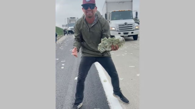 Nebunie pe autostradă în America. Oameni filmați în timp ce adunau mormane de dolari căzuți dintr-o dubă blindată VIDEO