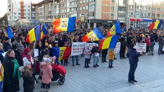 Protest la Suceava. O mie de persoane scandează împotriva certificatului verde: „Nu cedăm, nu ne vaccinăm!”. A fost prezent și liderul AUR VIDEO