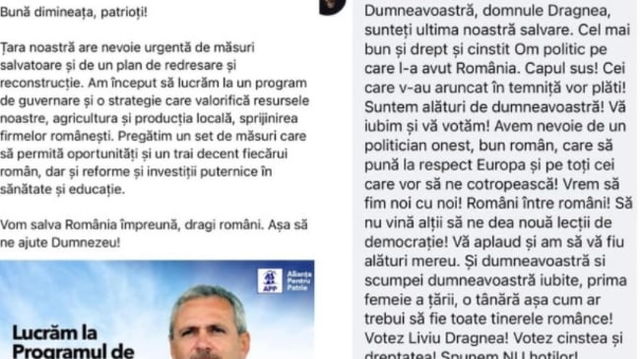 Comentariul ironic scris de actorul Mihai Bendeac la o postare a lui Liviu Dragnea: ”Dumneavoastră sunteți ultima noastră salvare”