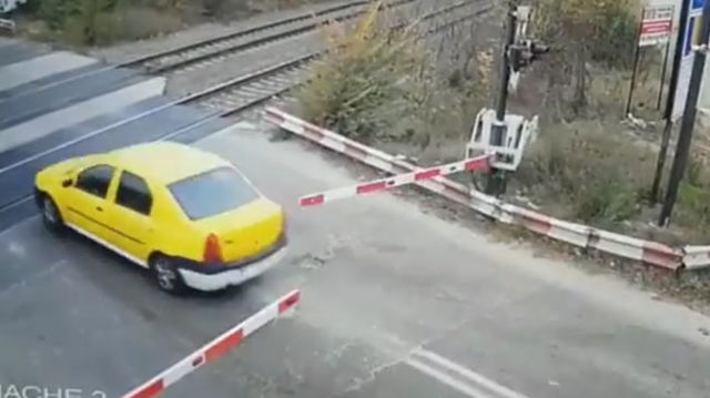 Un șofer inconștient forțează bariera de la trecerea peste calea ferată. Este al doilea incident în câteva zile VIDEO