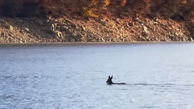 Imagini impresionante surprinse de un fotograf: O căprioară traversează înotând Lacul Izvorul Muntelui VIDEO