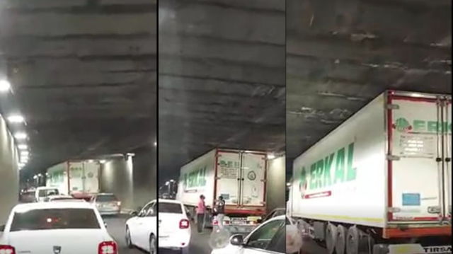 Cum a ajuns un TIR blocat în pasajul Unirii din București: ”Careva să ridice tavanul” VIDEO