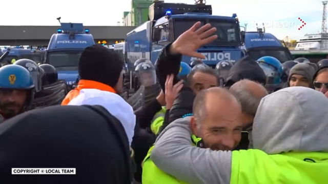 Violențe în Italia din cauza certificatul sanitar devenit obligatoriu la muncă. Poliția a folosit tunuri de apă și gaze lacrimogene VIDEO