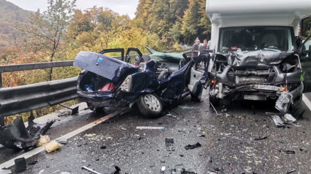 Accident cumplit în Prahova: 4 răniți, dintre care un bebeluș, după ciocnirea violentă a unei autorulote cu un Logan