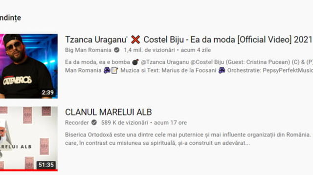 "Marele alb" se bate cu Tzanca Uraganu pentru locul I în tendințele YouTube. Câte vizionări a strâns în mai puțin de 24 de ore