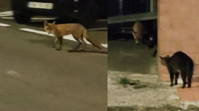 Confruntare între o vulpe și-o pisică filmată pe o stradă din Brașov. Cine a cedat lupta și a părăsit scena în ritm alert VIDEO