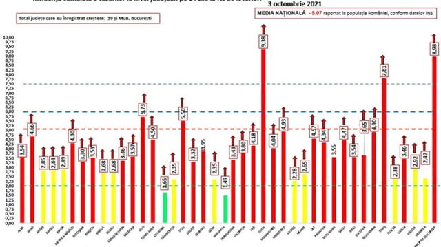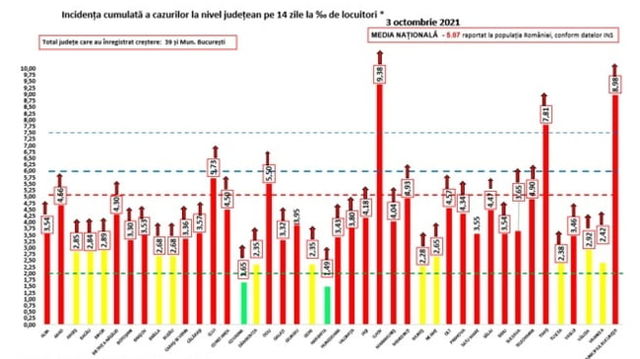 Capitala continuă să înregistreze cele mai multe cazuri noi COVID-19. 28 de județe, în scenariul roșu