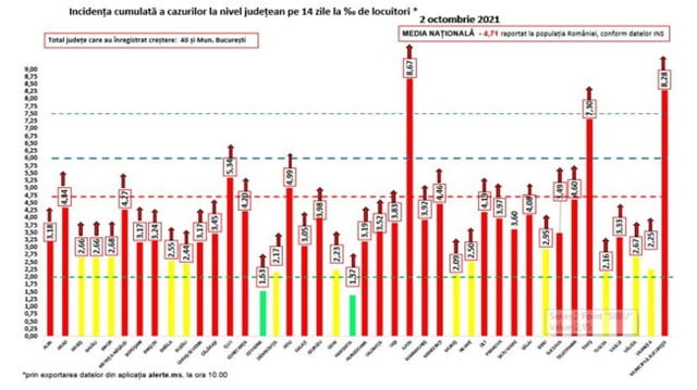 Peste 2.500 de infectări, raportate în București. Jumătate de țară în scenariul roșu. Ilfov, incidență de aproape 9