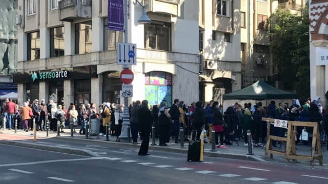 Imaginea zilei: zeci de persoane se îngrămădesc să intre într-o biserică din București, în ziua în care incidența a trecut de 8. „All vaccinated, I’m sure”