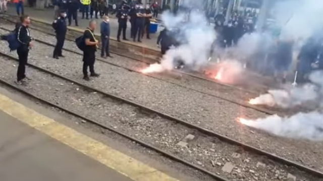 Ultrașii olteni s-au îmbrâncit cu jandarmii în Gara de Nord din București VIDEO