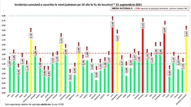 Trei județe din țară, în scenariul roșu și cinci în galben. Unde sunt cele mai multe infectări GRAFIC