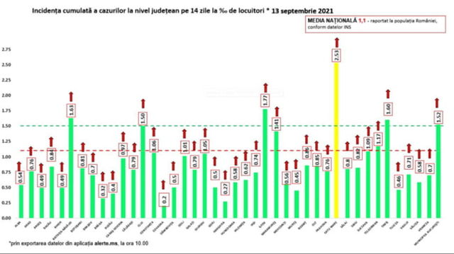 Primul județ care a intrat în scenariul galben. Alte 5 au depășit incidența de 1,5 la mia de locuitori