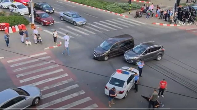 O mașină de poliție care transporta două femei pentru audieri, implicată într-un accident rutier VIDEO