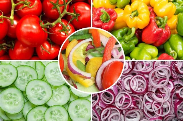 Ingredientele minune din salata de vară. Ce beneficii îți aduc roșiile, castraveții, ceapa și ardeii