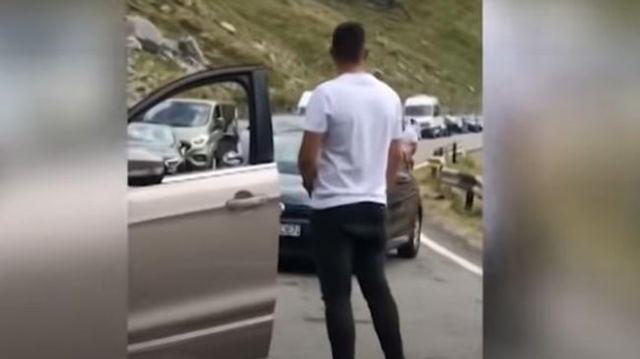 Bătaie între doi șoferi pe Transfăgărășan din cauza aglomerației. L-a luat pe capotă și a fugit VIDEO