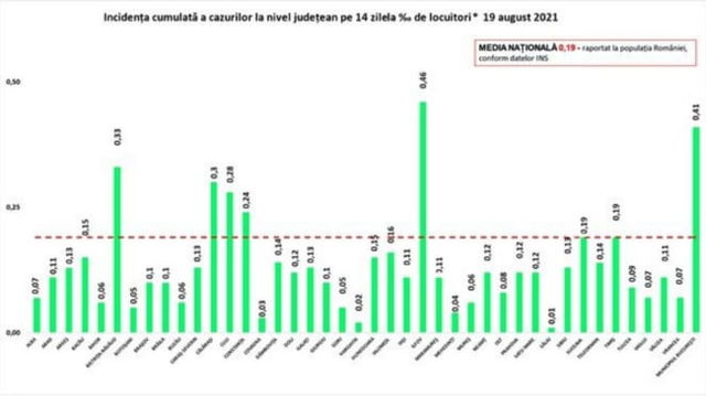 Topul județelor cu cele mai multe infectări noi de COVID-19. Incidența medie la nivel național a ajuns la 0,19 la mia de locuitori