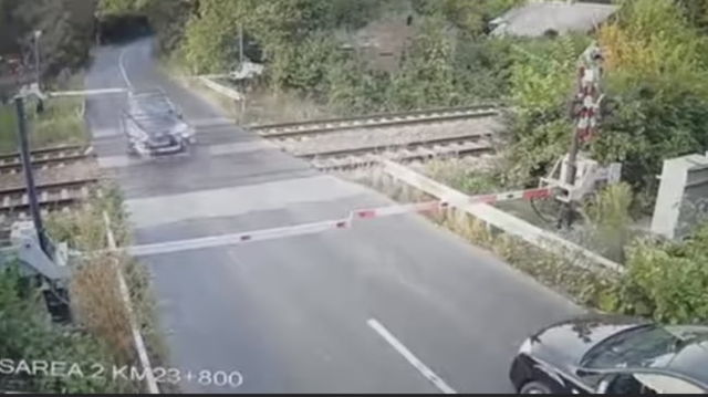 Un șofer a rupt barierele lăsate cu puțin timp înainte de trecerea trenului. Incident șocant filmat în județul Ilfov VIDEO