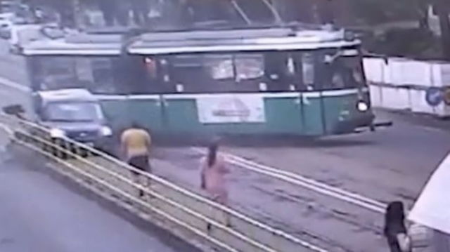Accident teribil în Iași. Un tramvai a sărit de pe şine după ce a fost lovit de o mașină, condusă de un bărbat de 70 de ani. VIDEO