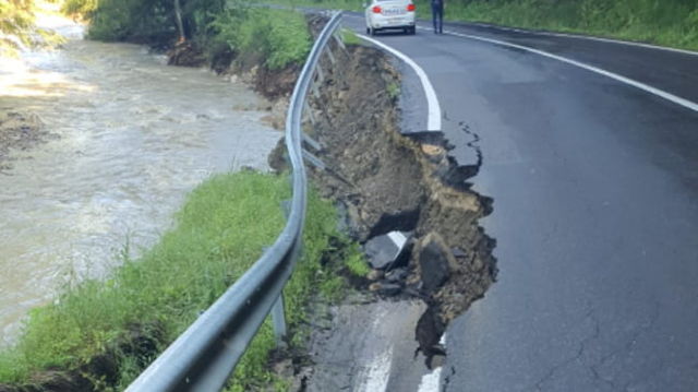 Circulația rutieră pe DN 1 A, afectată de o alunecare de teren la limita dintre Brașov și Prahova