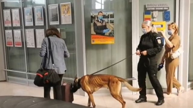 Câinii dresați să caute semne ale infecției cu SARS-CoV-2 au început să îi miroase pe pasagerii care ajung la aeroportul din Sibiu VIDEO