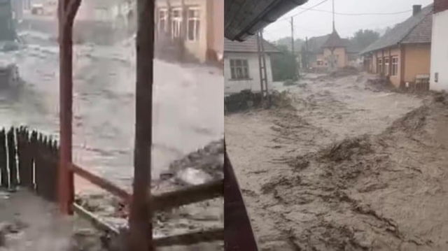 Viitură uriașă într-o comună din Apuseni. 13 persoane sunt izolate în podurile caselor. Se intervine pentru salvarea acestora VIDEO