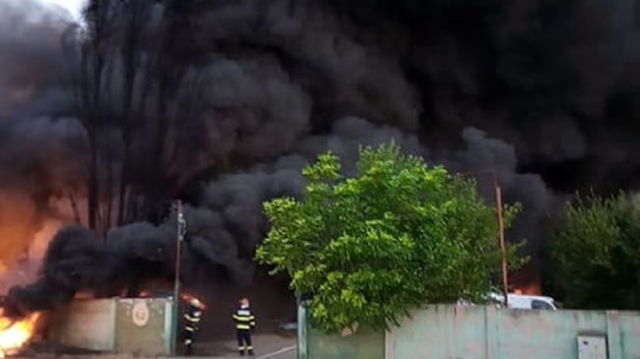 Incendiu puternic la un depozit de deseuri plastice din Salonta. Degajari masive de fum si gaze toxice VIDEO